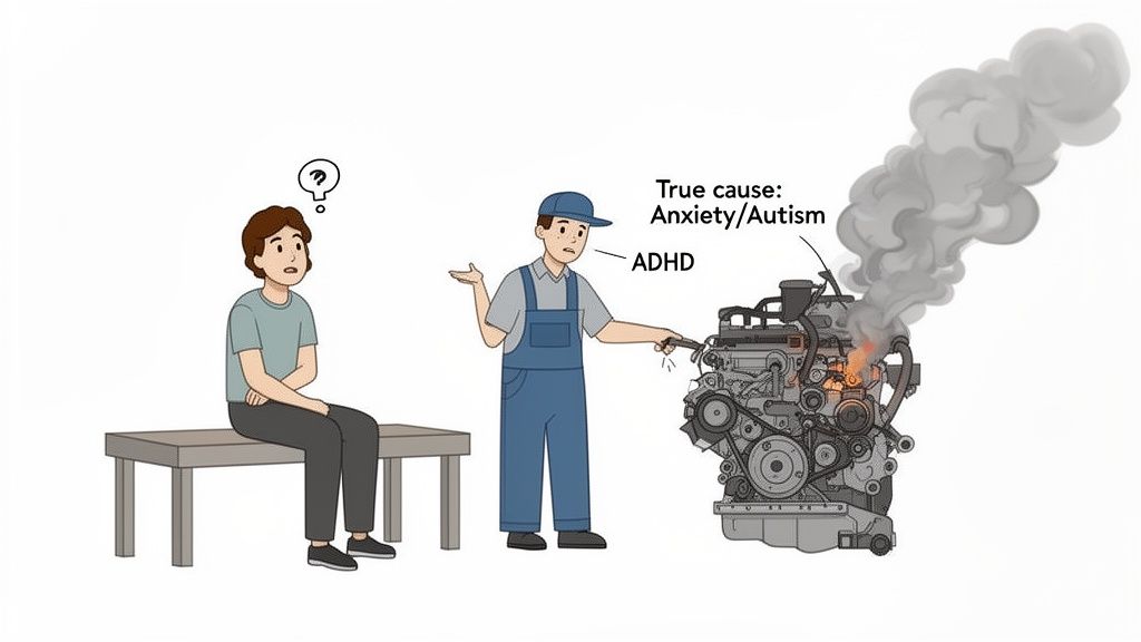 This guide is here to help you sort through the confusion of a potential ADHD misdiagnosis. We'll dig into why it happens so frequently, explore how conditions like anxiety, autism, or trauma can look a lot like ADHD, and give you a clear path forward to get the right answers. With solid information, you can move from a place of doubt to one of clarity, making sure you get support that actually fits you.